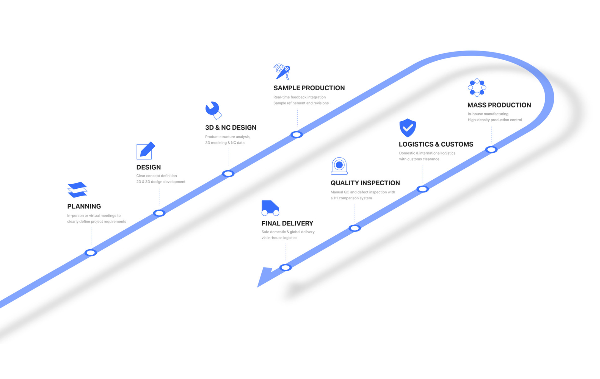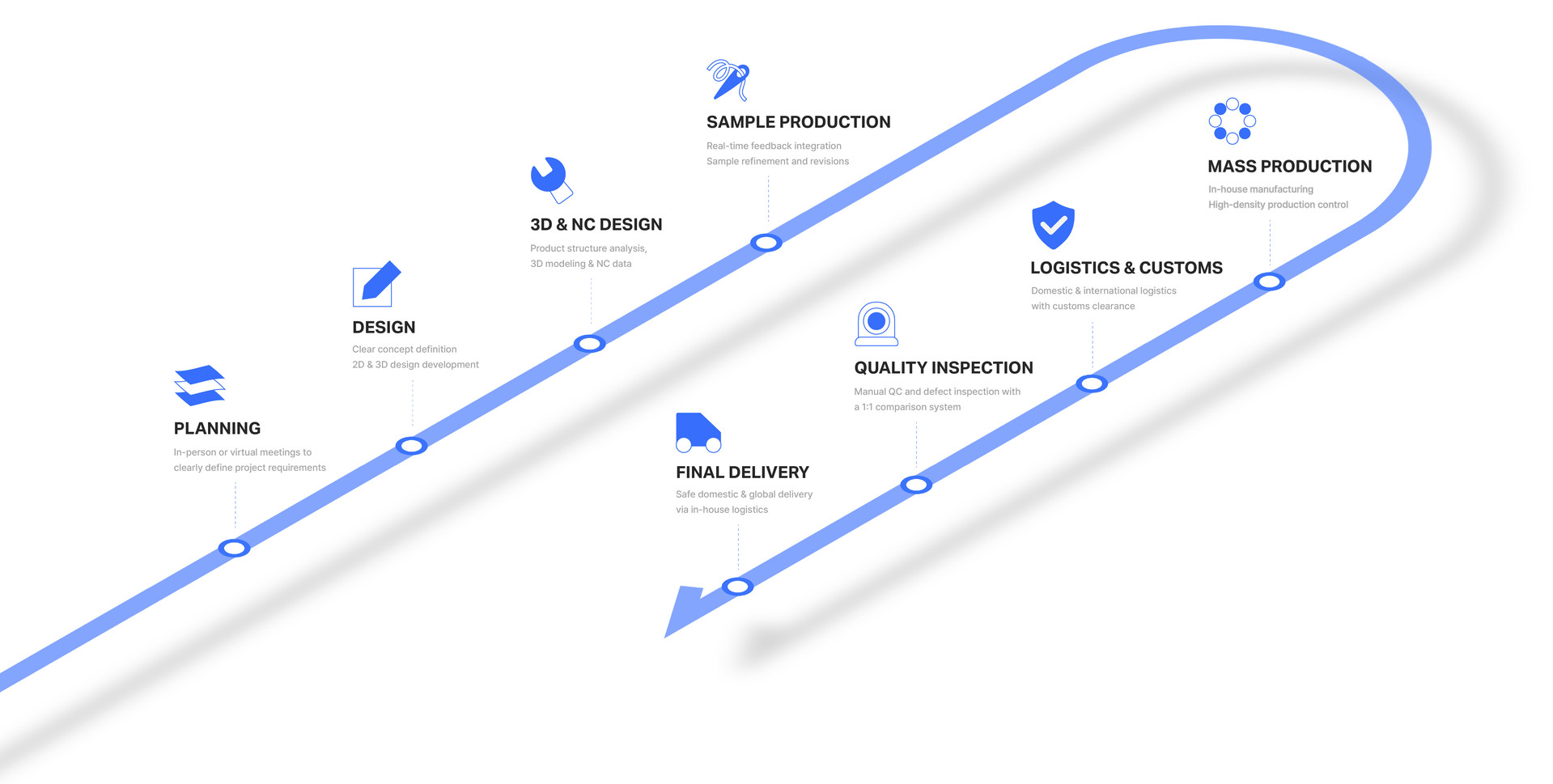 한 번에 책임지는 크리에이티브 파트너월 100만 개 이상 대응 가능한 대규모 제조 인프라스마트 시스템 기반의 정밀한 품질 관리까지